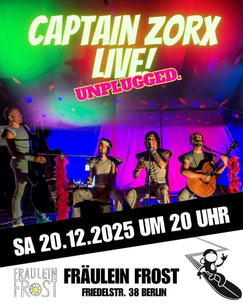 Seit ihrem historisch einwandfrei verbuchten Gründungstag am 1.1.2000 beglücken Captain Zorx die Welt mit ihrer ganz eigenen Vorstellung von ordentlicher Partymusik. Ausgerüstet mit dem Arsenal der klassischen Rockband, streifen unsere vier interstellaren Helden durch die Musikgeschichte und dringen über die reine Parodie hinaus in die Welt der musical martial arts vor. Ob Soul, Funk, Death Metal oder barocke Choräle – Captain Zorx jonglieren mit Bruchstücken ihrer eigenen musikalischen Vorlieben und fügen sie zu etwas Neuem zusammen. Die berüchtigte “musikalische Differenz”, die schon so manche Band das Leben gekostet hat, grinst bei dieser Band groß und fett von allen Fahnen.